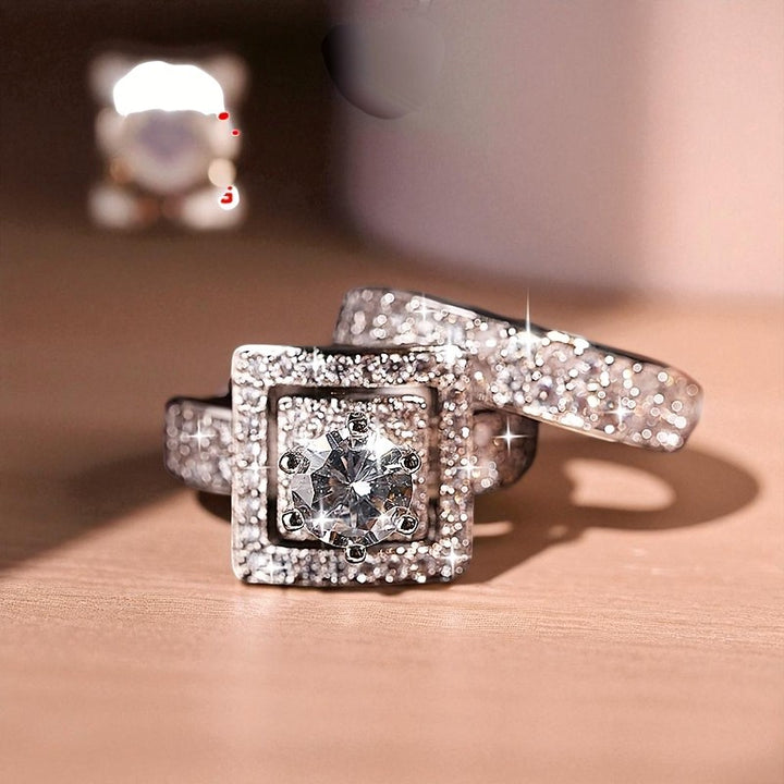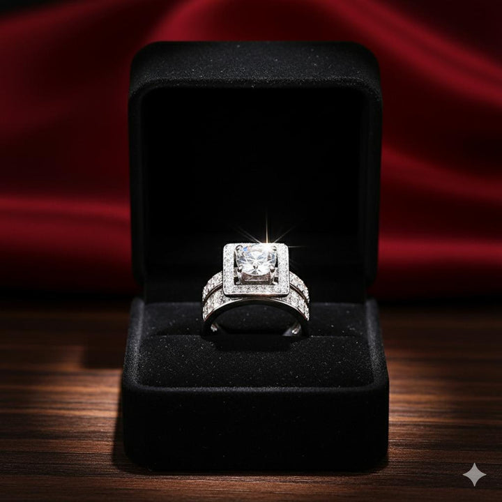 💎 Precision Gemstone Setting: The central princess-cut stone is showcased in a classic four-prong setting that allows for maximum light exposure and security. The accompanying side-stone setting adds an extra layer of brilliance and sophistication.