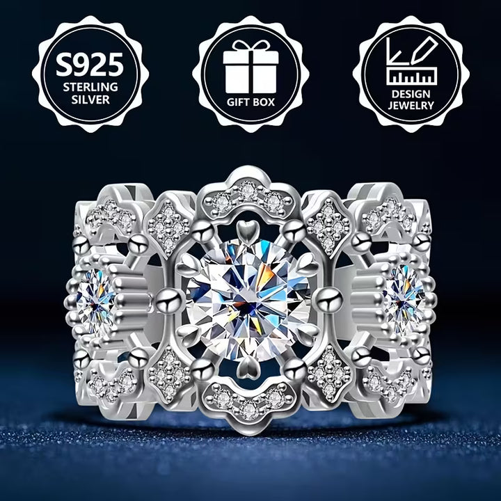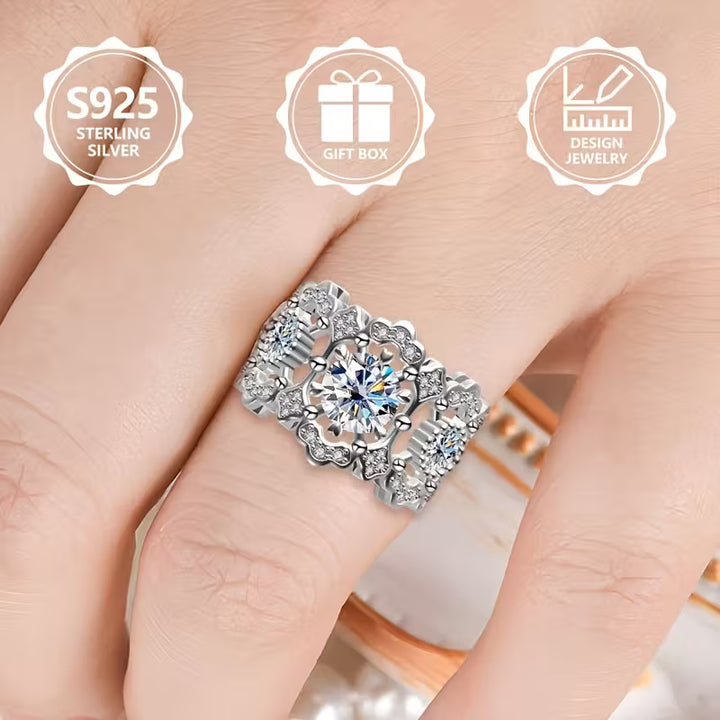 Vintage Hollow Sterling Silver Ring with a Trio of Sparkling Stones